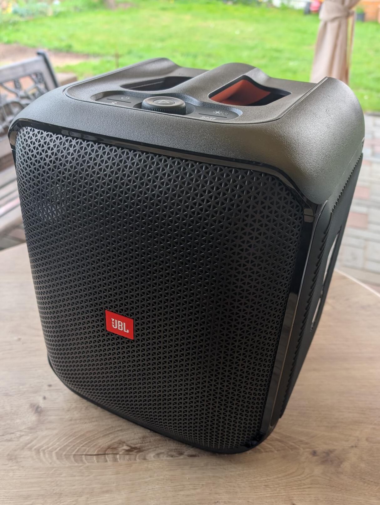 Tragegriff – Netzkabel zum aufladen – Bluetooth – 5.1 – 100W – beeindruckender JBL Original Pro Sound – eingebauter Akku – dynamische Lichtshow, passend zum Beat – 6 Stunden Wiedergabezeit